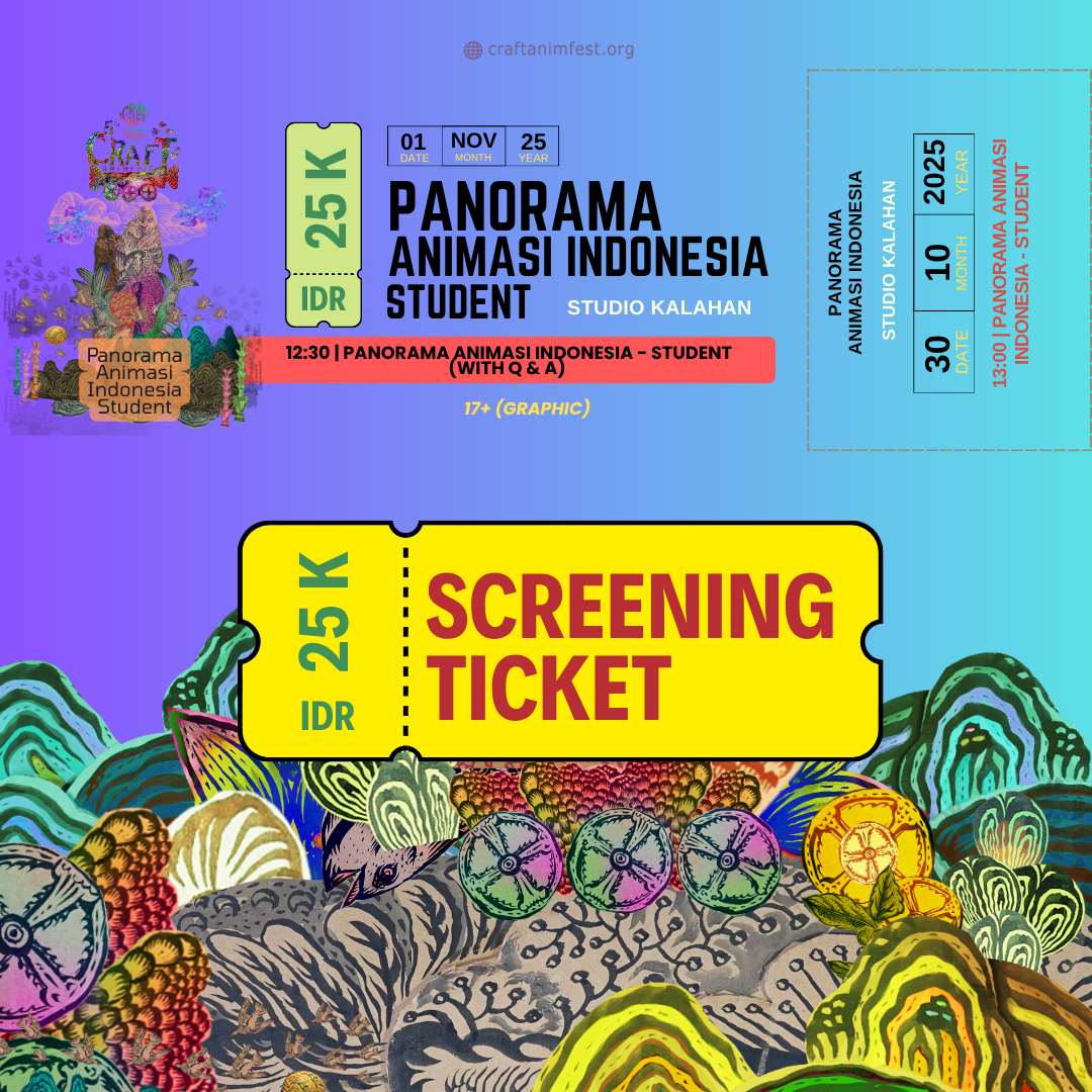 Tonton Panorama Animasi Indonesia – Student (with Q&A)!Animasi pelajar Indonesia dengan gaya segar & eksperimental.🗓️ 1 Nov | 12.30 | Studio Kalahan🔞 17+ (graphic)🎟️ Rp25.000 | Info: linktr.ee/crafanimfest